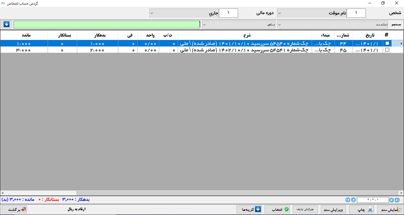 | 11 | هشدار چک های صادره و دریافتی به ازای تعداد روز دلخواه (ویجت) | ||||